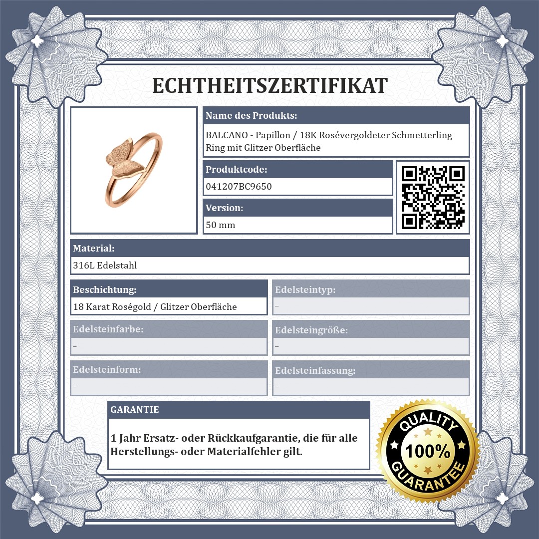 BALCANO - Papillon / 18K Rosévergoldeter Schmetterling Ring mit Glitzer Oberfläche