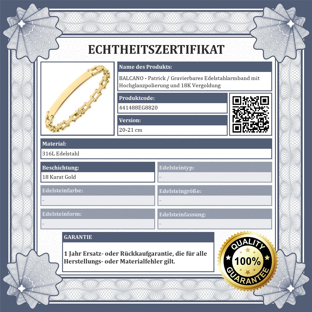 BALCANO - Patrick / Gravierbares Edelstahlarmband mit Hochglanzpolierung und 18K Vergoldung