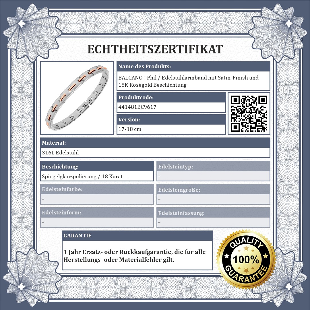 BALCANO - Phil / Edelstahlarmband mit Satin-Finish und 18K Roségold Beschichtung