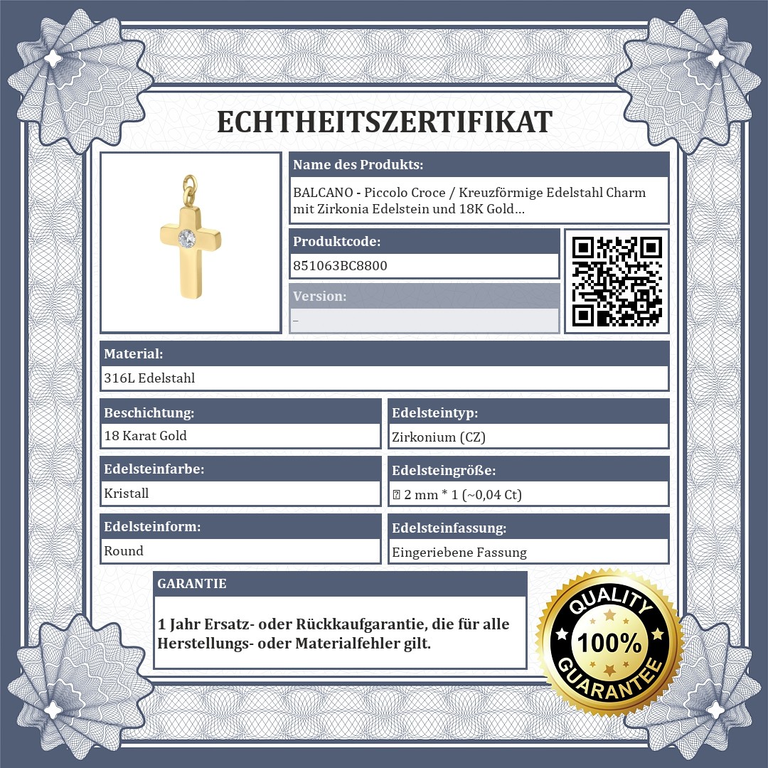 BALCANO - Piccolo Croce / Kreuzförmige Edelstahl Charm mit Zirkonia Edelstein und 18K Gold Beschichtung