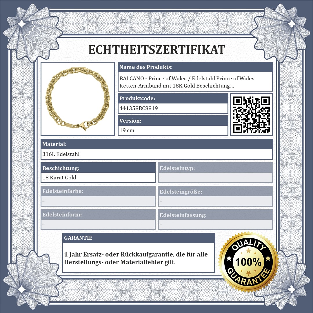 BALCANO - Prince of Wales / Edelstahl Prince of Wales Ketten-Armband mit 18K Gold Beschichtung - 6 mm
