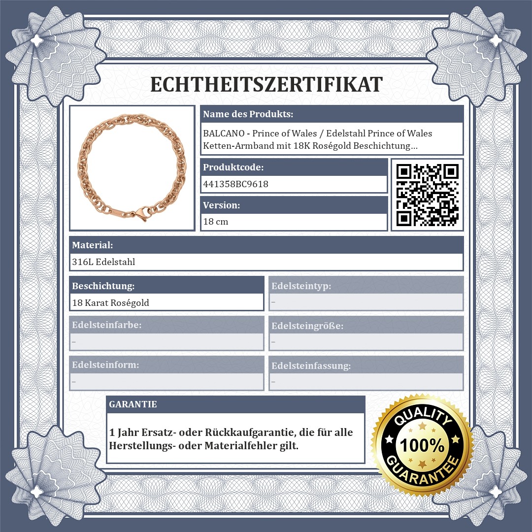 BALCANO - Prince of Wales / Edelstahl Prince of Wales Ketten-Armband mit 18K Roségold Beschichtung - 6 mm