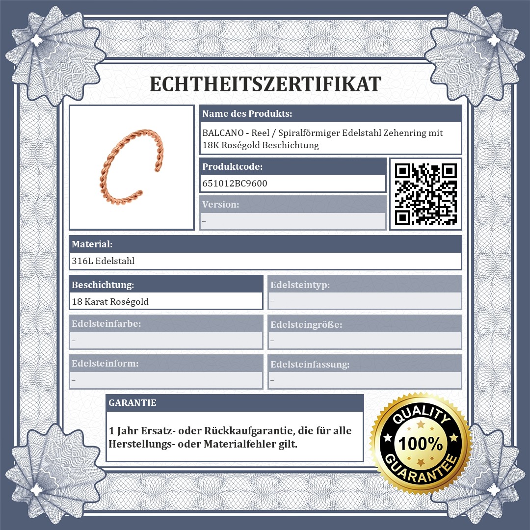 BALCANO - Reel / Spiralförmiger Edelstahl Zehenring mit 18K Roségold Beschichtung