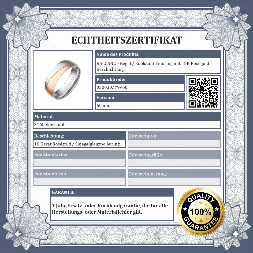 BALCANO - Regal / Edelstahl Trauring mit 18K Roségold Beschichtung