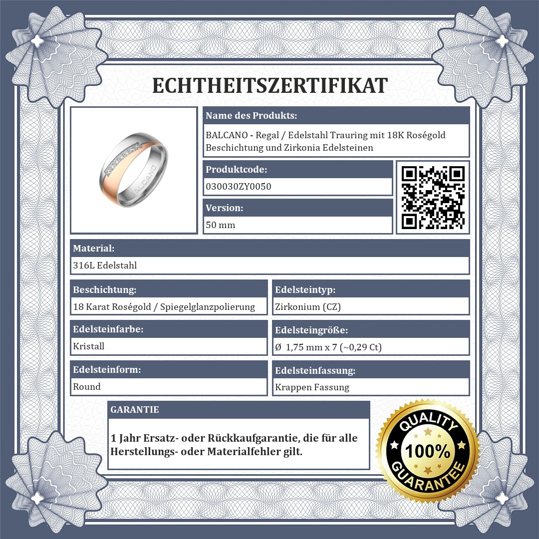 BALCANO - Regal / Edelstahl Trauring mit 18K Roségold Beschichtung und Zirkonia Edelsteinen