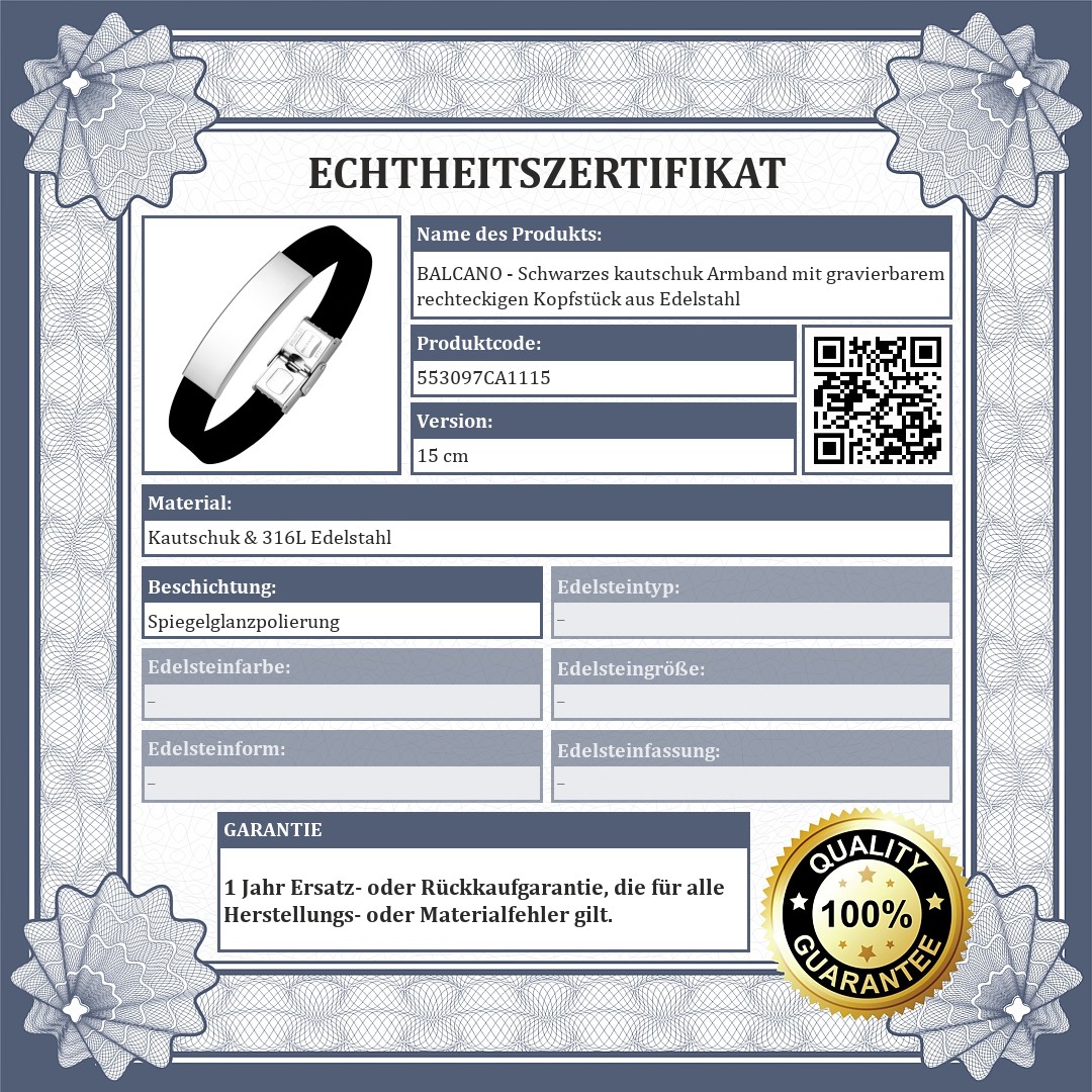 BALCANO - Schwarzes kautschuk Armband mit gravierbarem rechteckigen Kopfstück aus Edelstahl