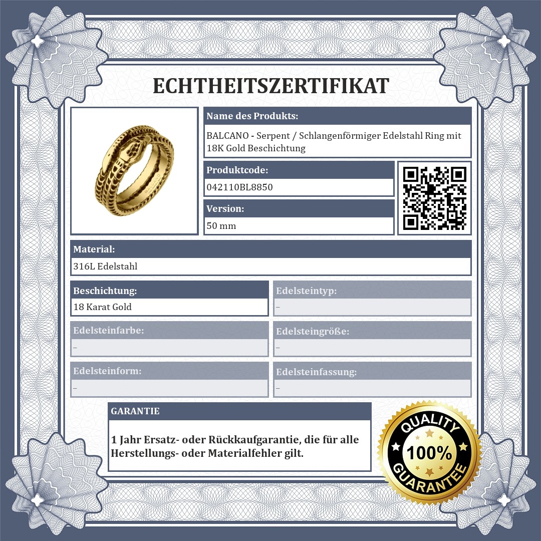 BALCANO - Serpent / Schlangenförmiger Edelstahl Ring mit 18K Gold Beschichtung