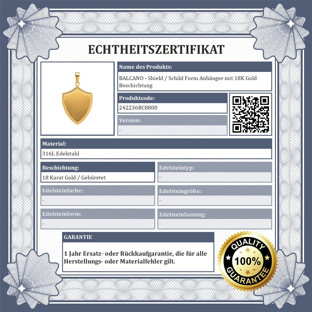 BALCANO - Shield / Schild Form Anhänger mit 18K Gold Beschichtung