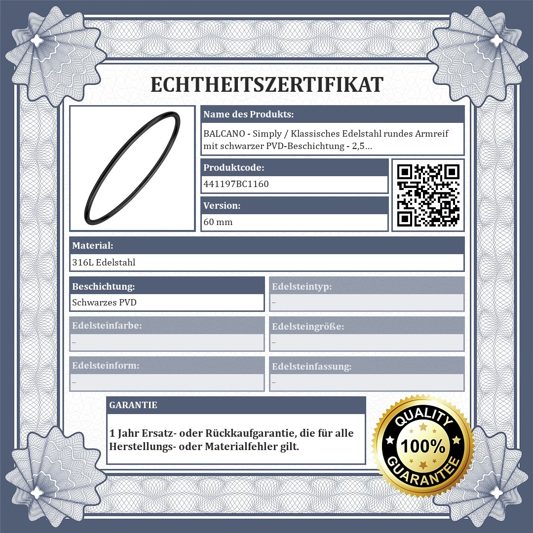 BALCANO - Simply / Klassisches Edelstahl rundes Armreif mit schwarzer PVD-Beschichtung - 2,5 mm