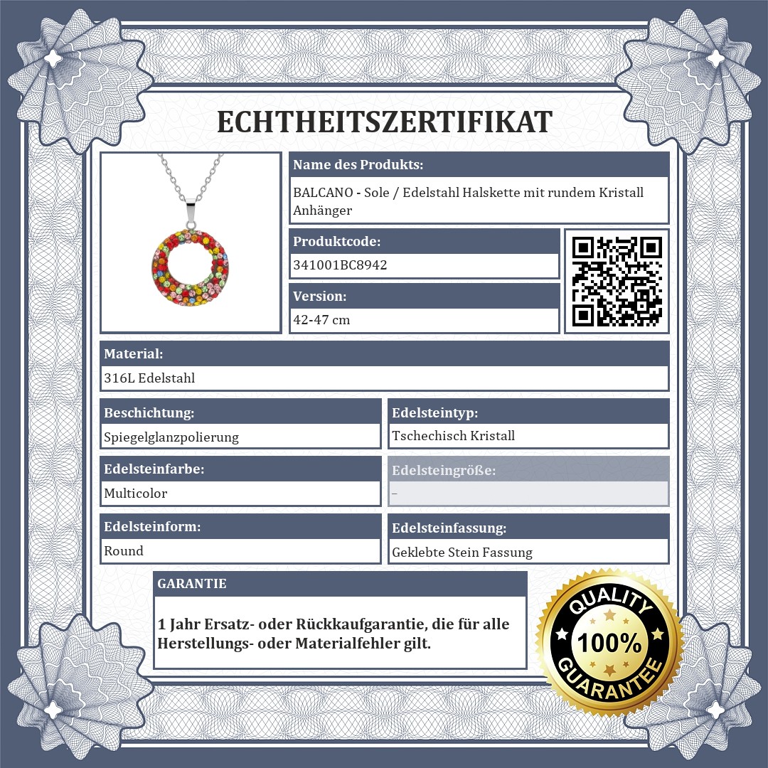 BALCANO - Sole / Edelstahl Halskette mit rundem Kristall Anhänger