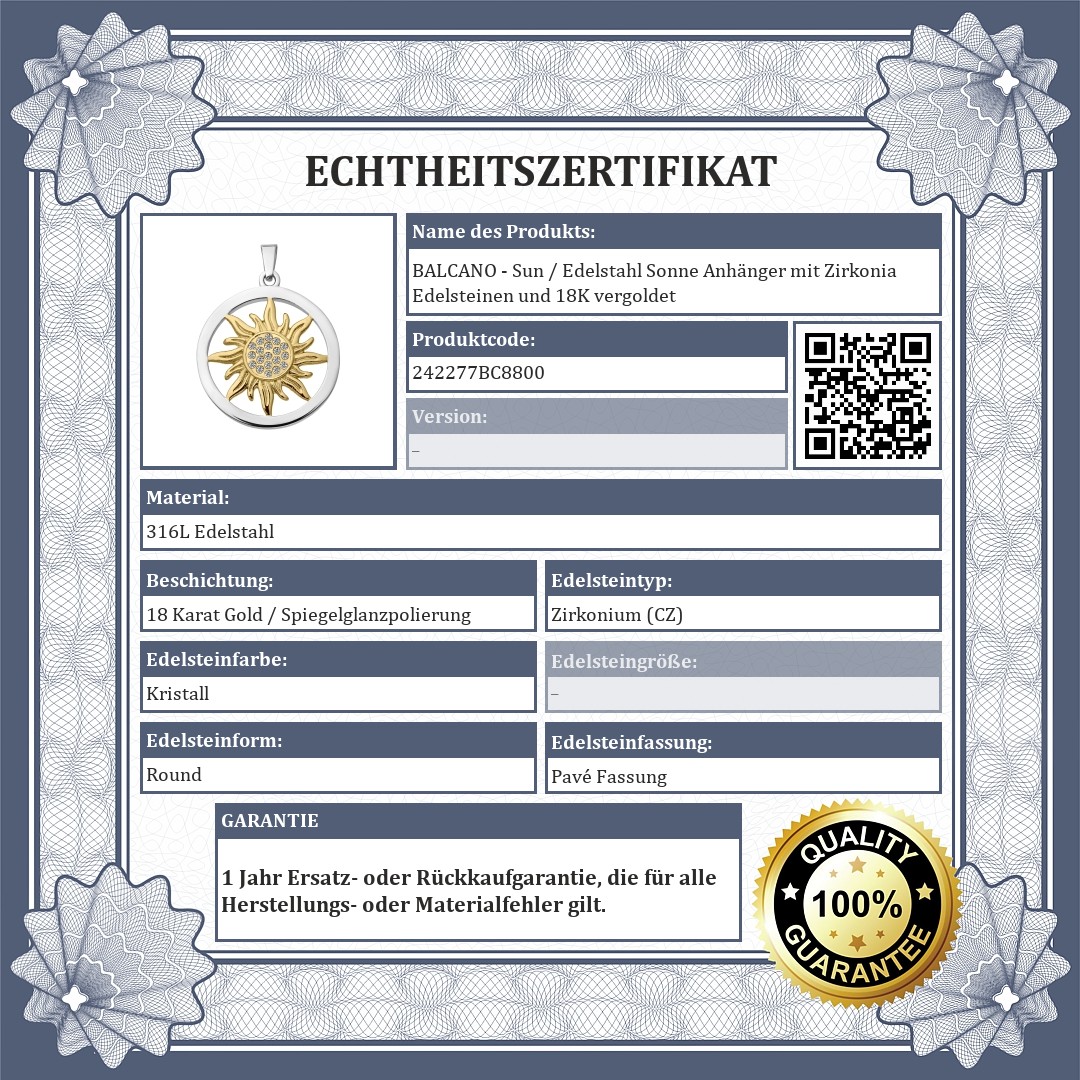 BALCANO - Sun / Edelstahl Sonne Anhänger mit Zirkonia Edelsteinen und 18K vergoldet