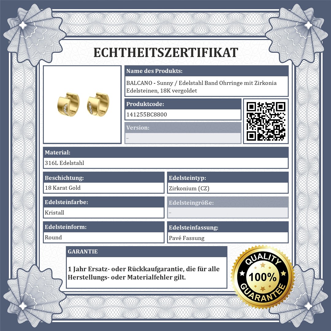 BALCANO - Sunny / Edelstahl Band Ohrringe mit Zirkonia Edelsteinen, 18K vergoldet