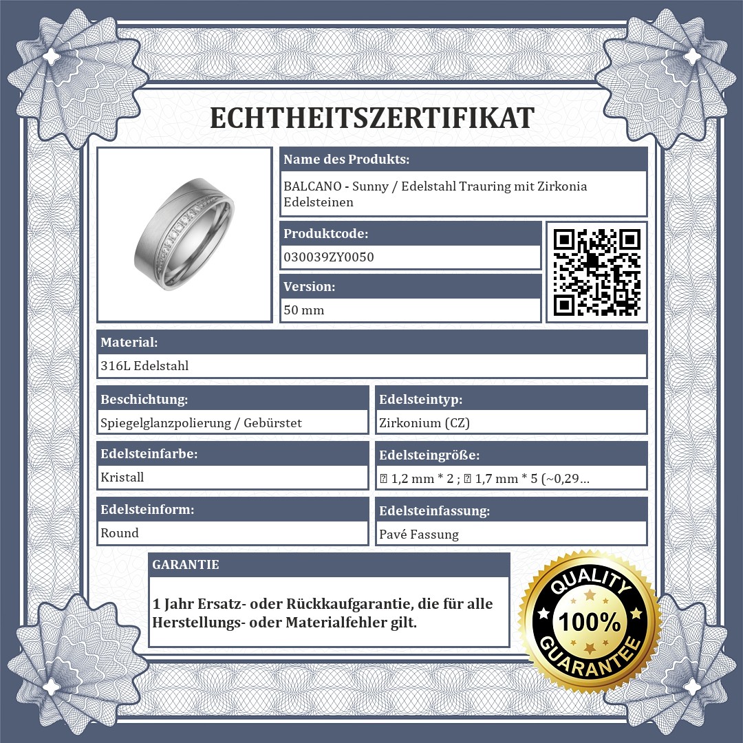 BALCANO - Sunny / Edelstahl Trauring mit Zirkonia Edelsteinen