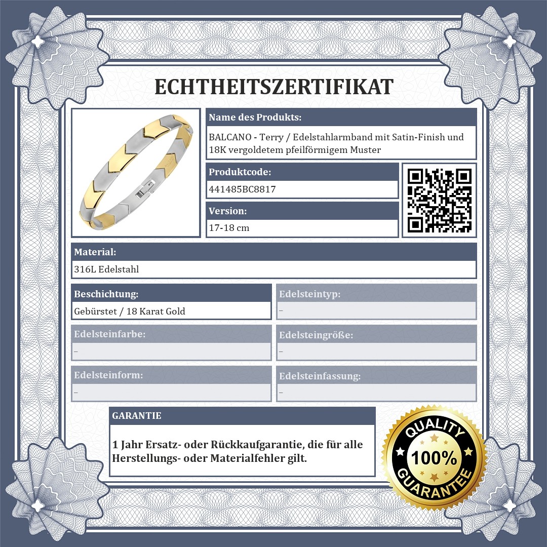 BALCANO - Terry / Edelstahlarmband mit Satin-Finish und 18K vergoldetem pfeilförmigem Muster