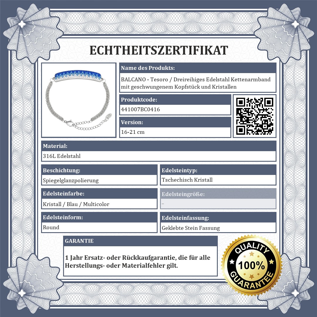BALCANO - Tesoro / Dreireihiges Edelstahl Kettenarmband mit geschwungenem Kopfstück und Kristallen