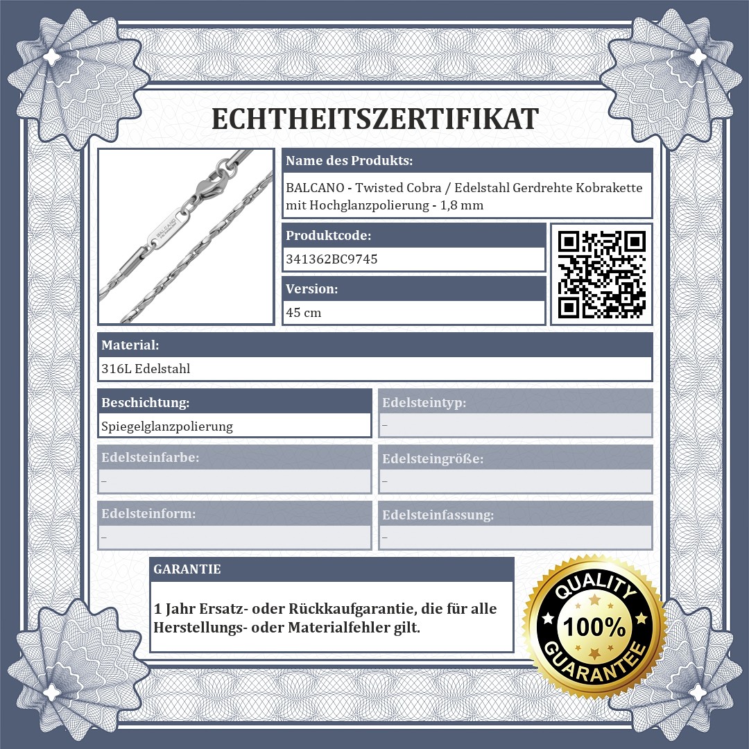 BALCANO - Twisted Cobra / Edelstahl Gerdrehte Kobrakette mit Hochglanzpolierung - 1,8 mm