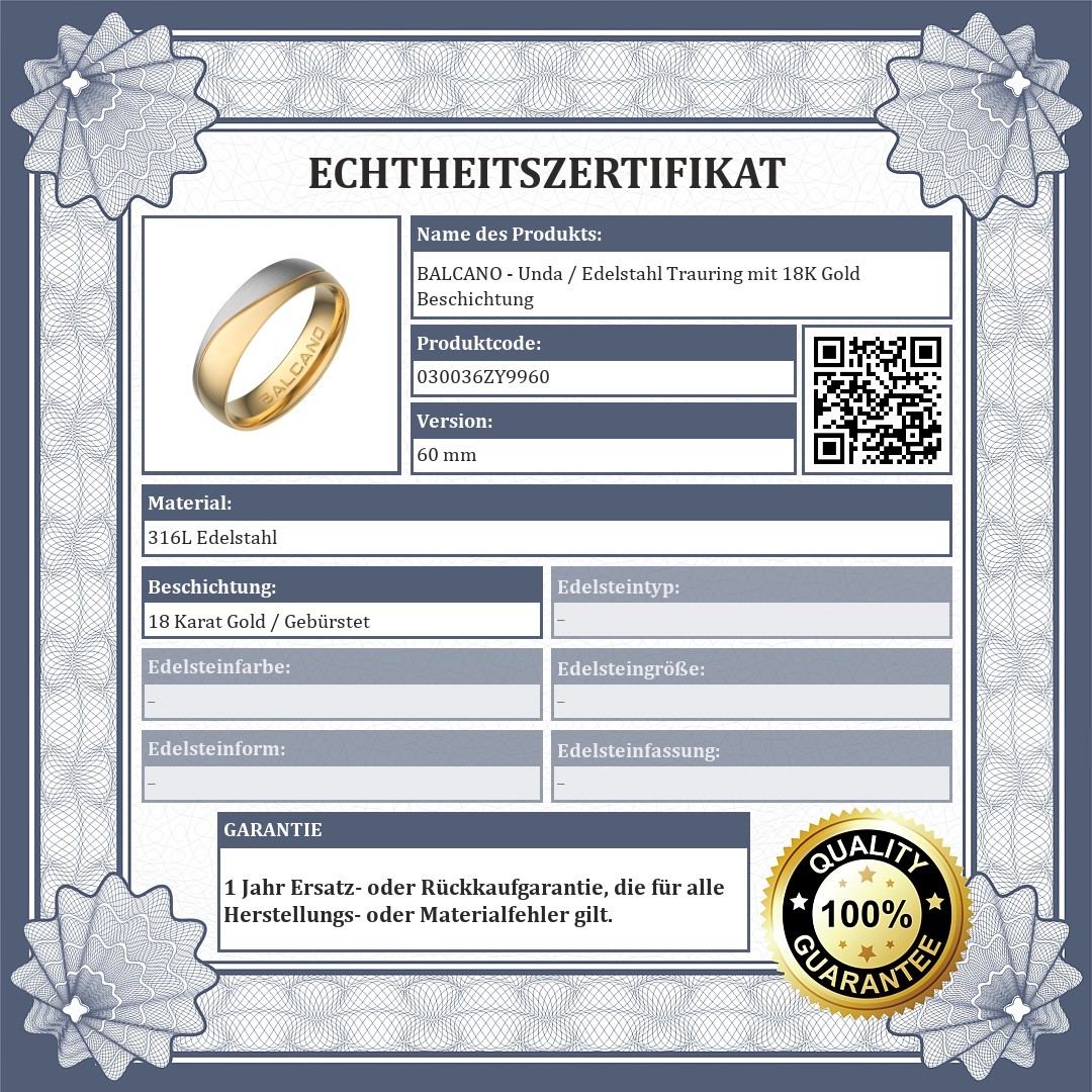 | Beschichtung: | 18 Karat Gold / Gebürstet (matt) |