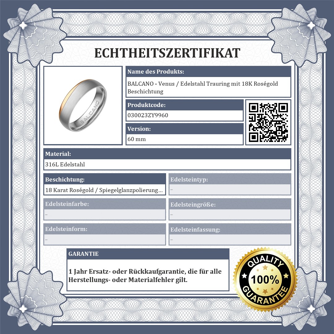 BALCANO - Venus / Edelstahl Trauring mit 18K Roségold Beschichtung