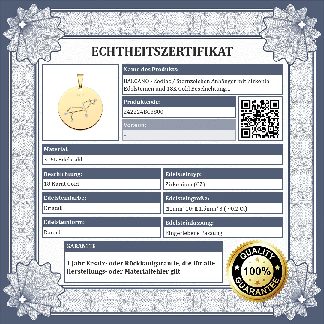 BALCANO - Zodiac / Sternzeichen Anhänger mit Zirkonia Edelsteinen und 18K Gold Beschichtung - Löwe