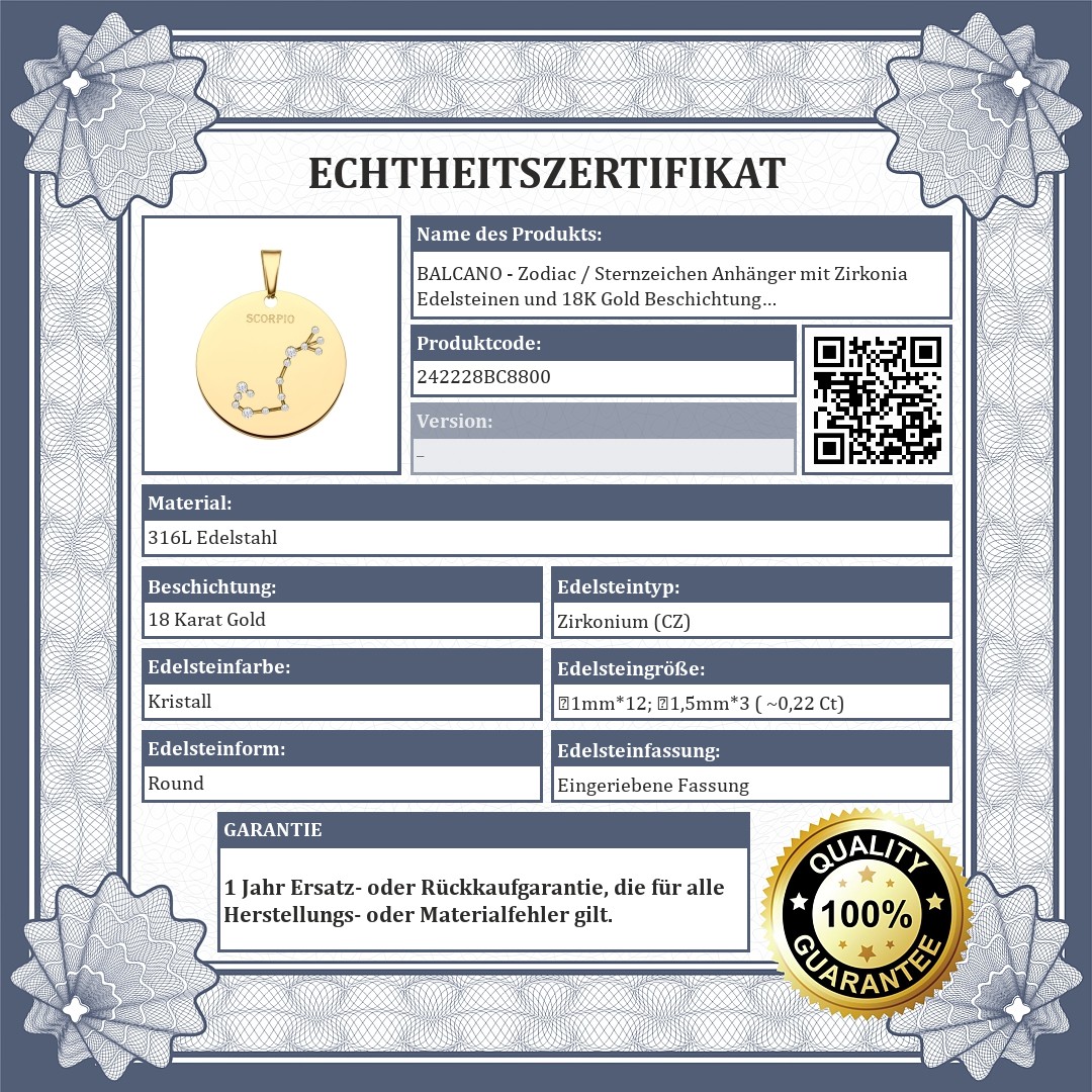 BALCANO - Zodiac / Sternzeichen Anhänger mit Zirkonia Edelsteinen und 18K Gold Beschichtung - Skorpion