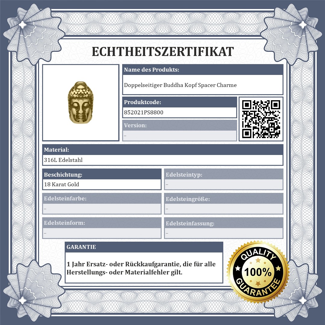 Buddha-Kopf Spacer Charme. Hergestellt aus medizinischem 316L-Edelstahl mit 18K Goldbeschichtung. Hohe Qualität, wird nicht verschleißen oder anlaufen mit der Verwendung. Die Spacer sorgen dafür, dass die Charmes und Perlen nicht von Ihrem Armband abrutschen.