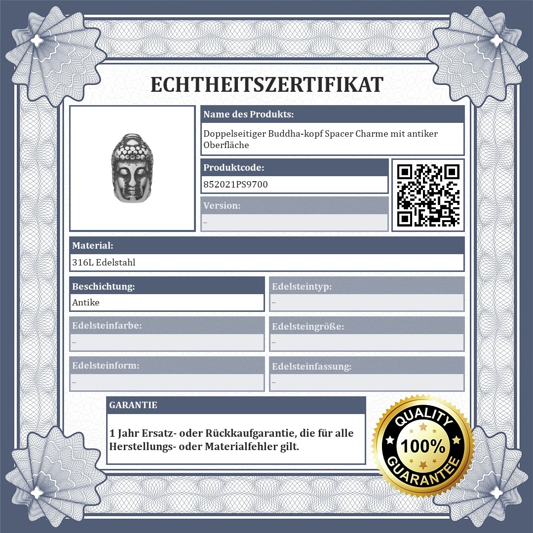 Buddha-Kopf Spacer Charme. Die Oberfläche dieses Zubehör aus medizinischem Edelstahl 316L ist mit einem speziellen Antik-Effekt versehen. Hohe Qualität, wird nicht verschleißen oder anlaufen mit der Verwendung. Die Spacer sorgen dafür, dass die Charmes und Perlen nicht von Ihrem Armband abrutschen.
