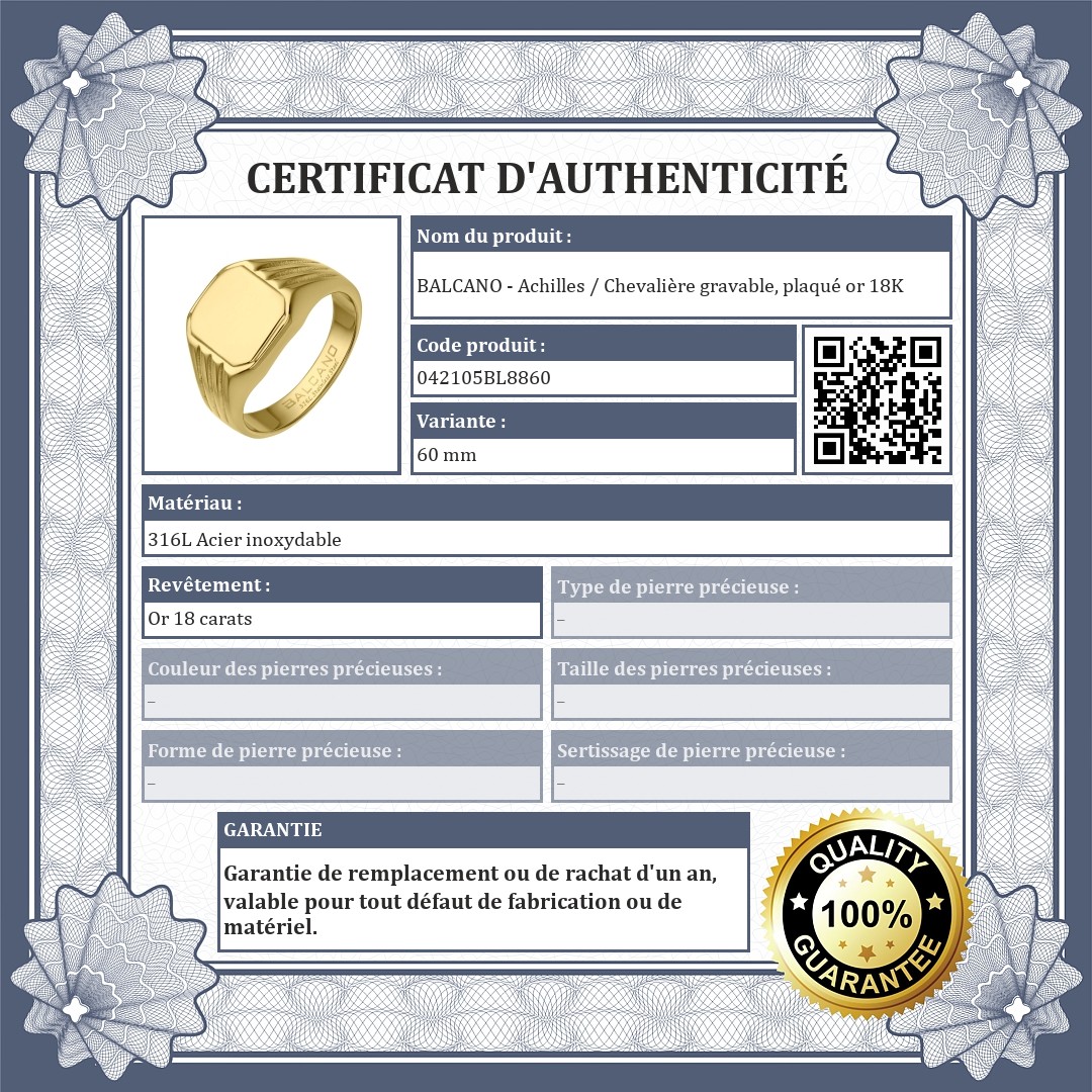 BALCANO - Achilles / Chevalière gravable, plaqué or 18K