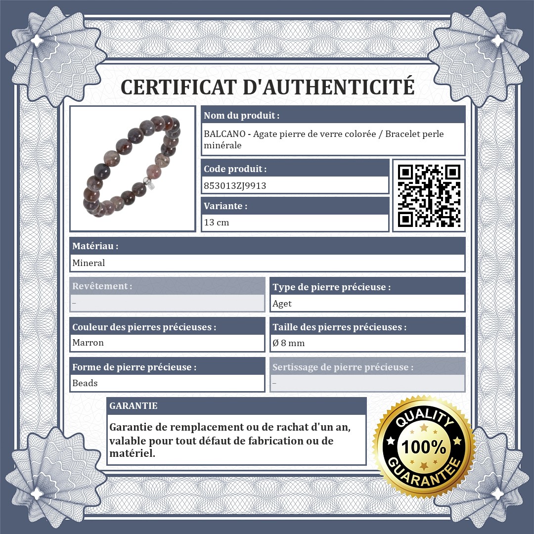 L'authenticité des pierres précieuses est certifiée par un certificat de qualité officiel.