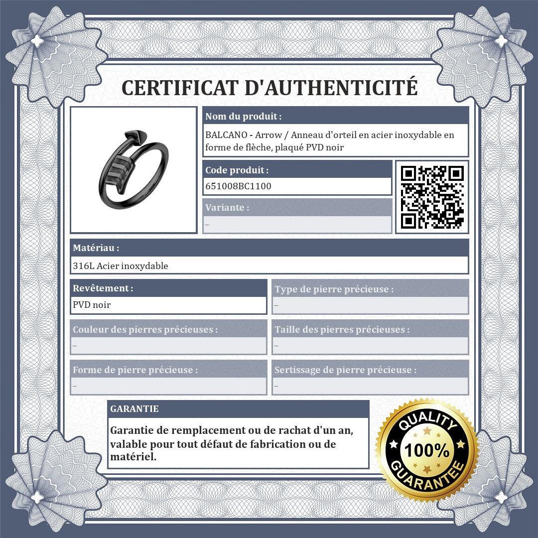 BALCANO - Arrow / Anneau d'orteil en acier inoxydable en forme de flèche, plaqué PVD noir