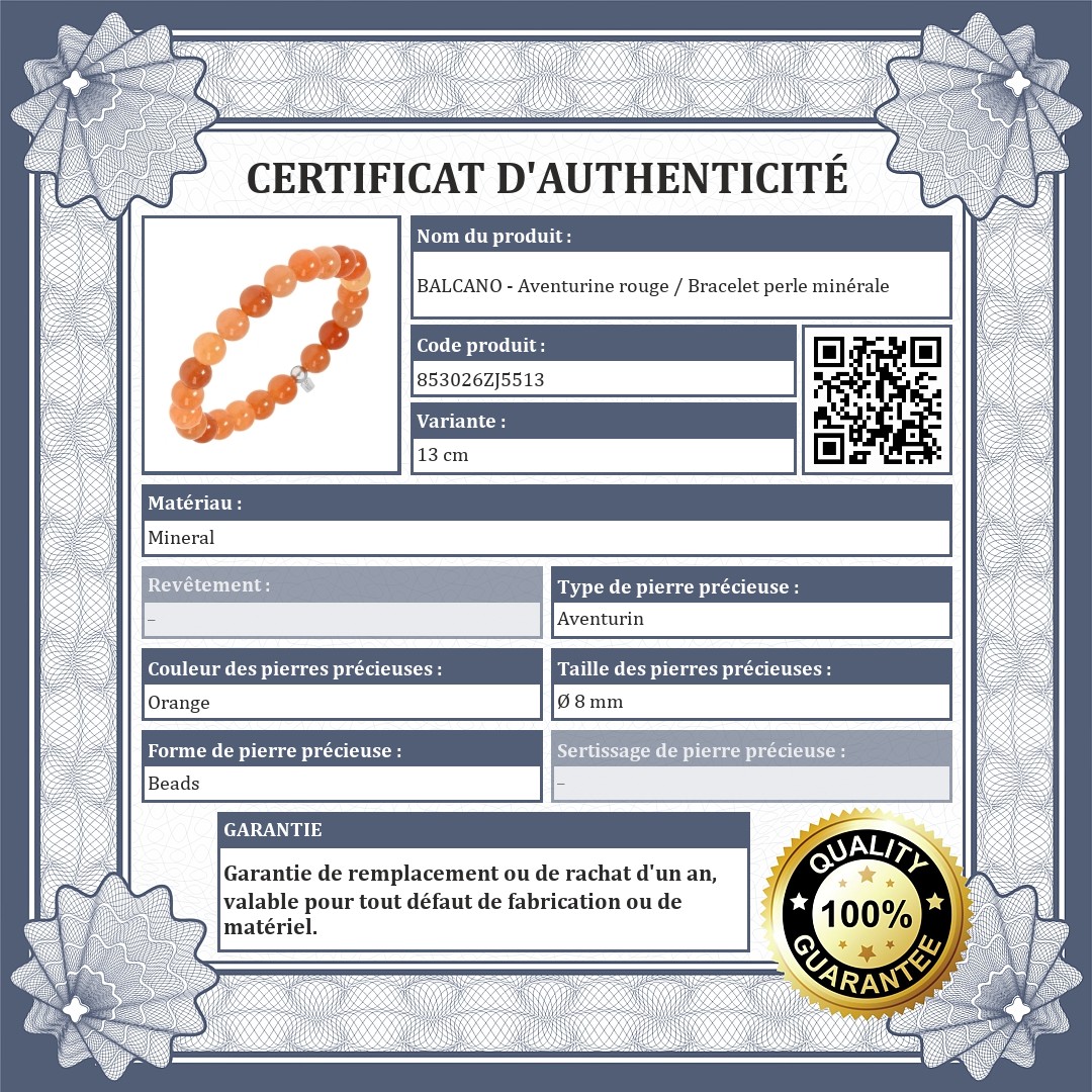 BALCANO - Aventurine rouge / Bracelet perle minérale