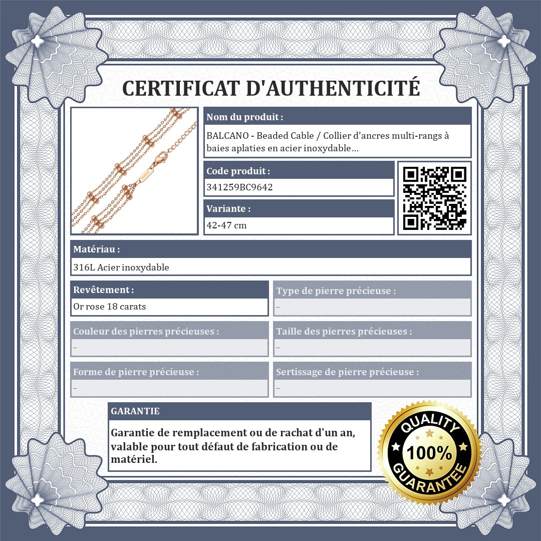 BALCANO - Beaded Cable / Collier d'ancres multi-rangs à baies aplaties en acier inoxydable plaqué or rose 18K