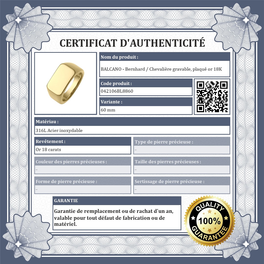 BALCANO - Bernhard / Chevalière gravable, plaqué or 18K (042106BL88)