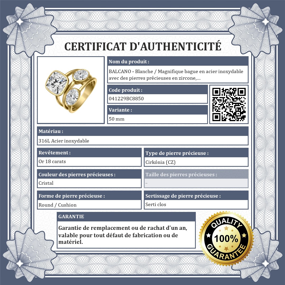 BALCANO - Blanche / Magnifique bague en acier inoxydable avec des pierres précieuses en zircone, plaqué or 18K