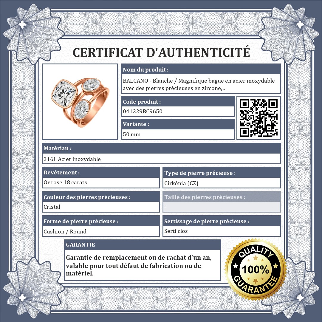 BALCANO - Blanche / Magnifique bague en acier inoxydable avec des pierres précieuses en zircone, plaqué or rose 18K