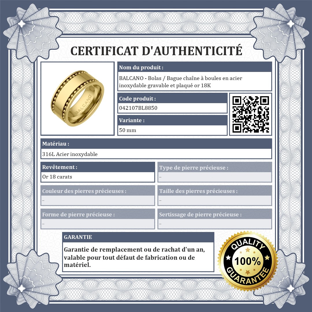 BALCANO - Bolas / Bague chaîne à boules en acier inoxydable gravable et plaqué or 18K