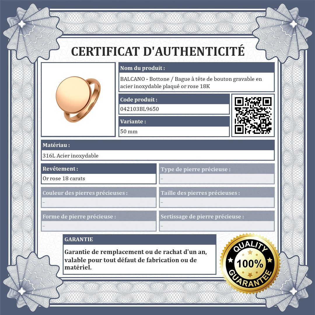 BALCANO - Bottone / Bague à tête de bouton gravable en acier inoxydable plaqué or rose 18K