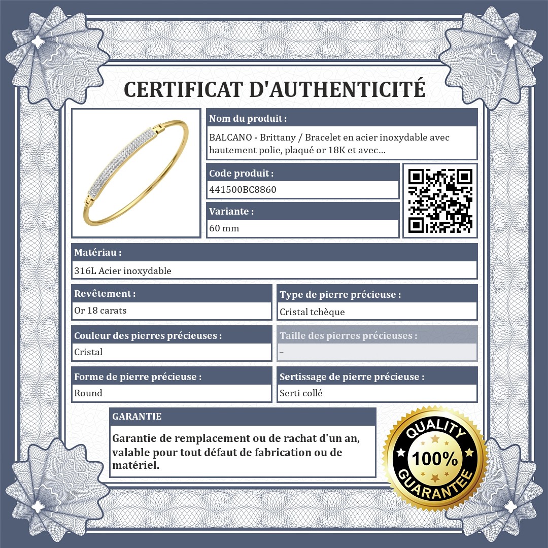 BALCANO - Brittany / Bracelet en acier inoxydable avec hautement polie, plaqué or 18K et avec cristaux tchèques