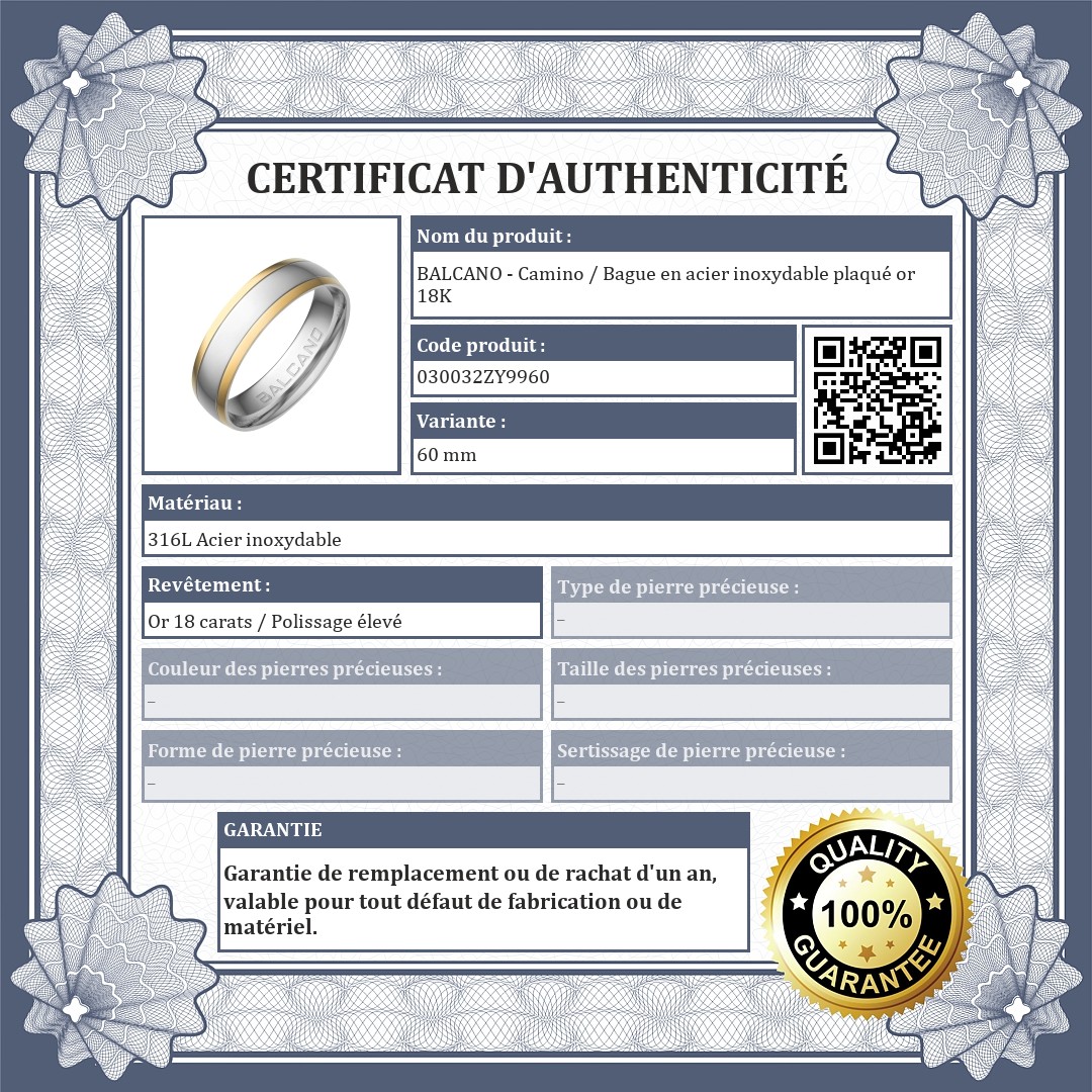 BALCANO - Camino / Bague en acier inoxydable plaqué or 18K (030032ZY99)