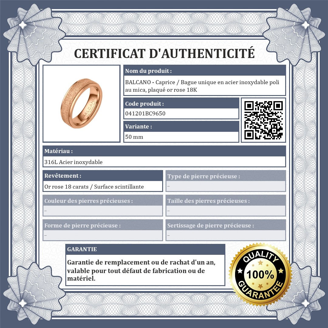 BALCANO - Caprice / Bague unique en acier inoxydable poli au mica, plaqué or rose 18K