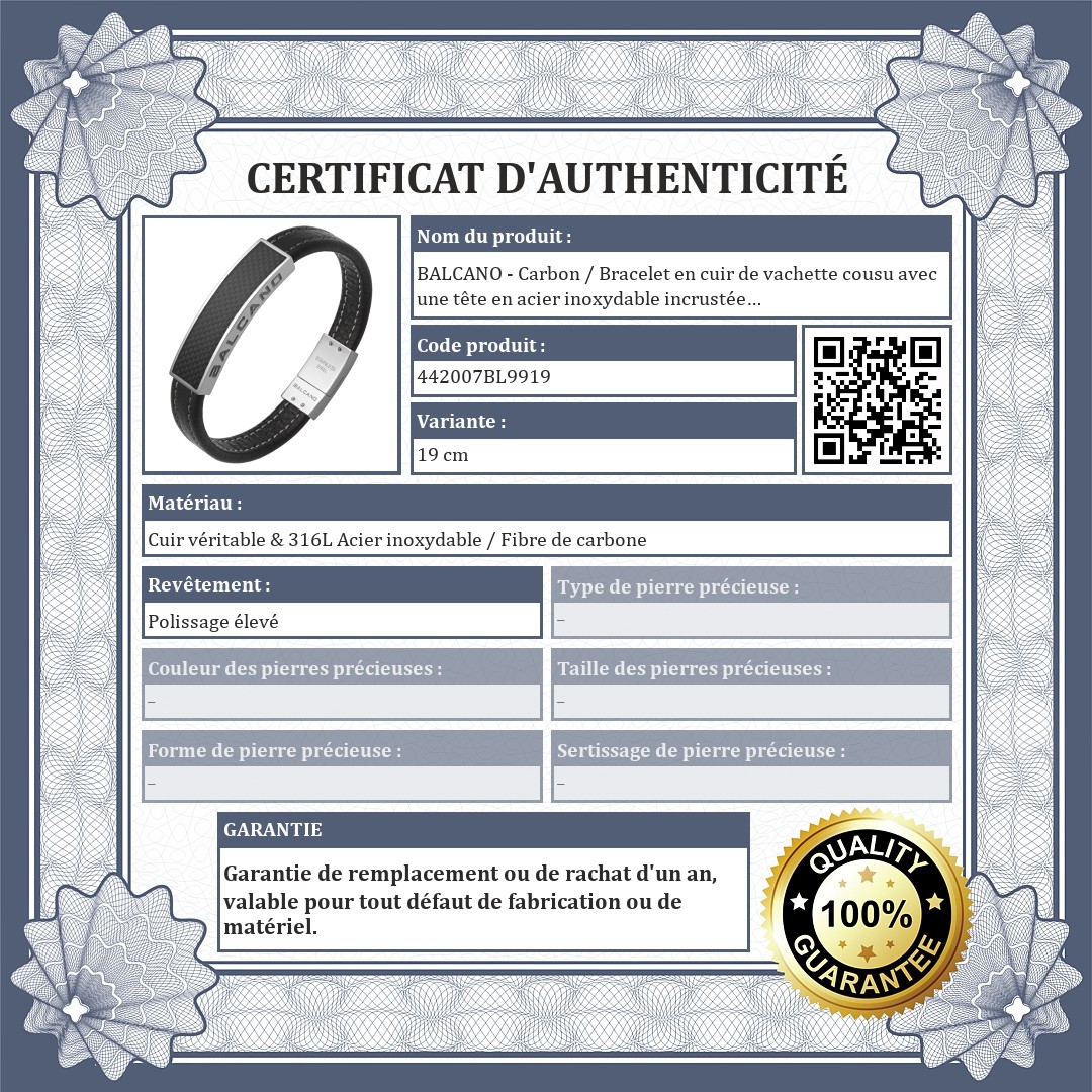 BALCANO - Carbon / Bracelet en cuir de vachette cousu avec une tête en acier inoxydable incrustée de fibres de carbone