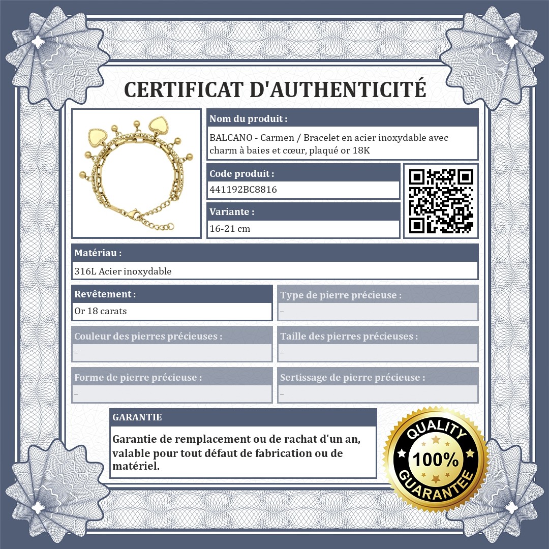 BALCANO - Carmen / Bracelet en acier inoxydable avec charm à baies et cœur, plaqué or 18K