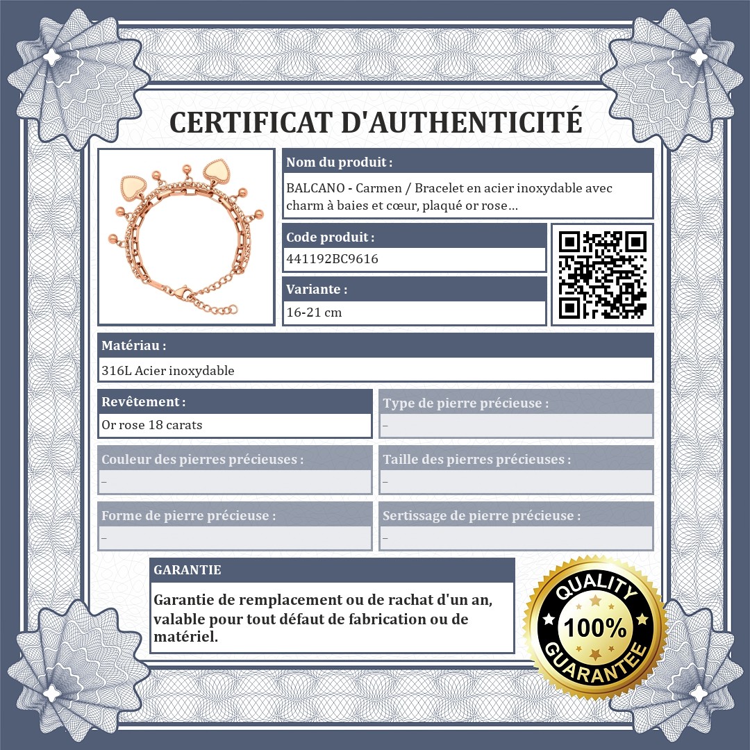 BALCANO - Carmen / Bracelet en acier inoxydable avec charm à baies et cœur, plaqué or rose 18K