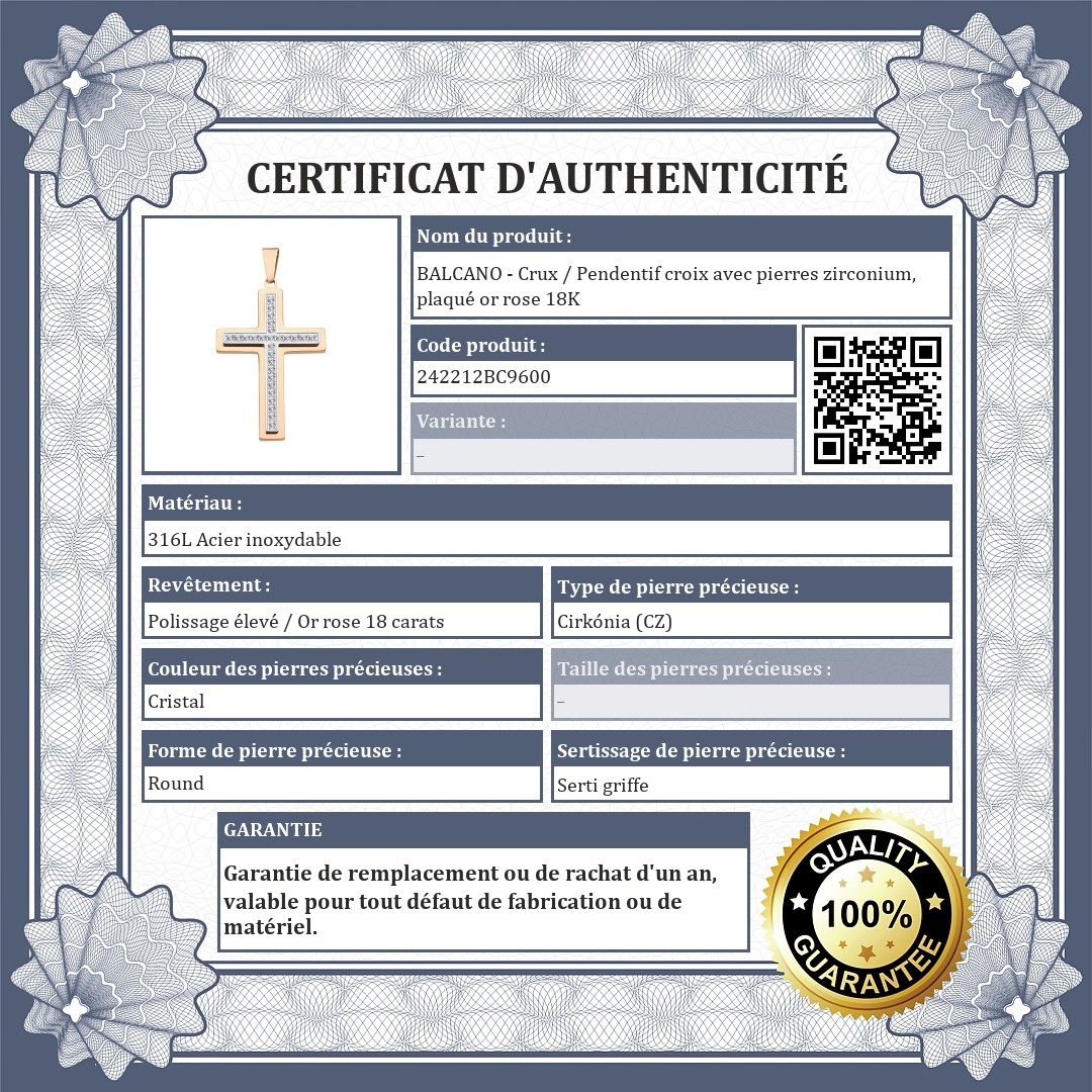 BALCANO - Crux / Pendentif croix avec pierres zirconium, plaqué or rose 18K