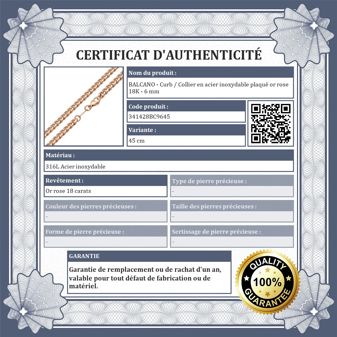 BALCANO - Curb / Collier en acier inoxydable plaqué or rose 18K - 6 mm