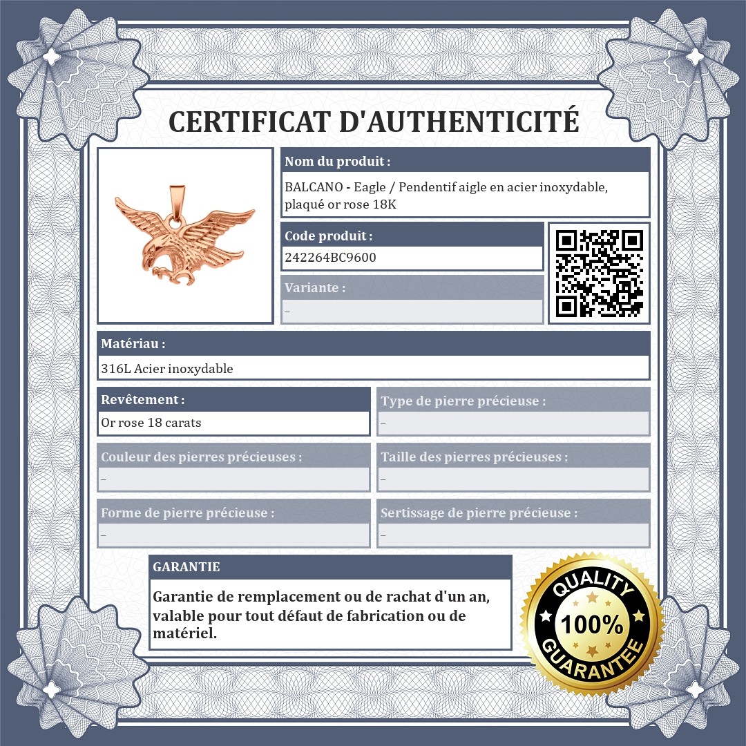 BALCANO - Eagle / Pendentif aigle en acier inoxydable, plaqué or rose 18K