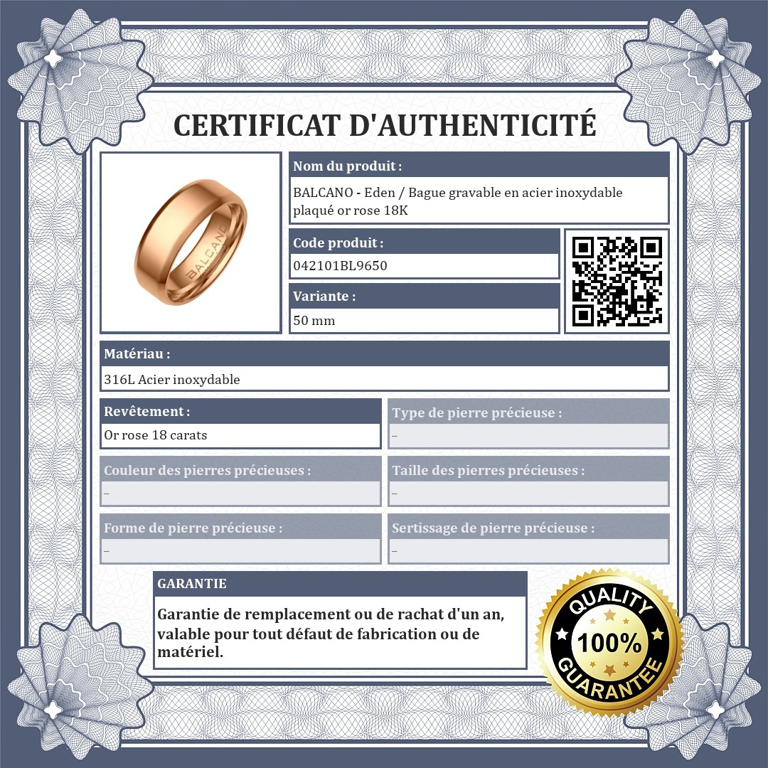 BALCANO - Eden / Bague gravable en acier inoxydable plaqué or rose 18K