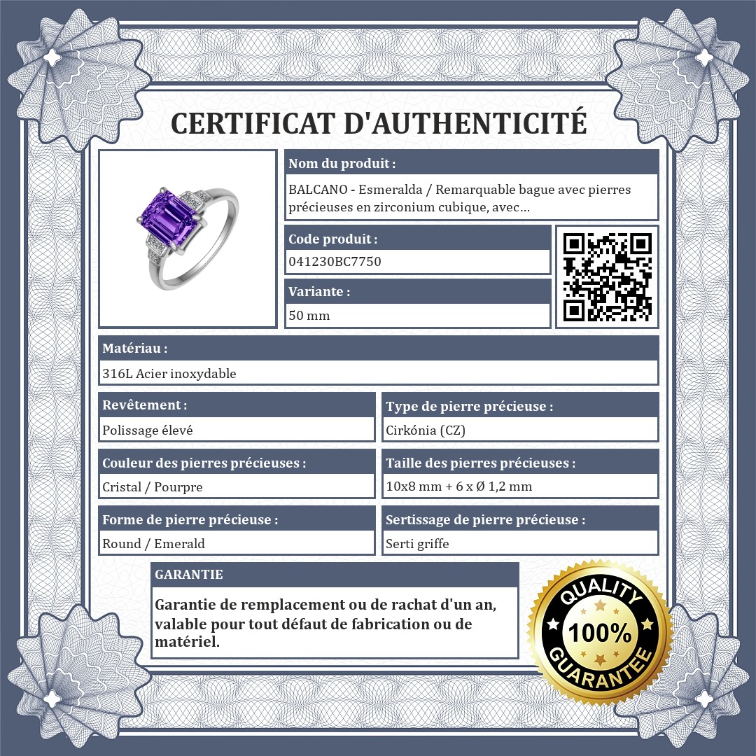BALCANO - Esmeralda / Remarquable bague avec pierres précieuses en zirconium cubique, avec finition polie