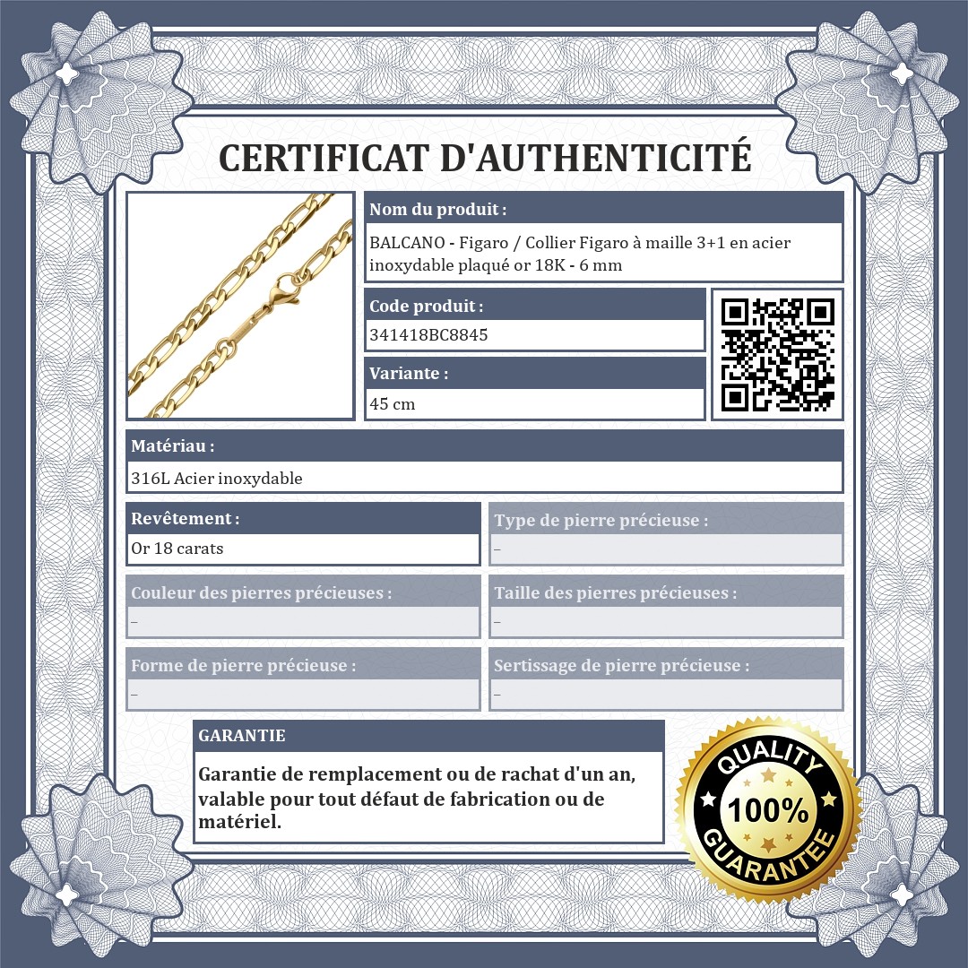 BALCANO - Figaro / Collier Figaro à maille 3+1 en acier inoxydable plaqué or 18K - 6 mm