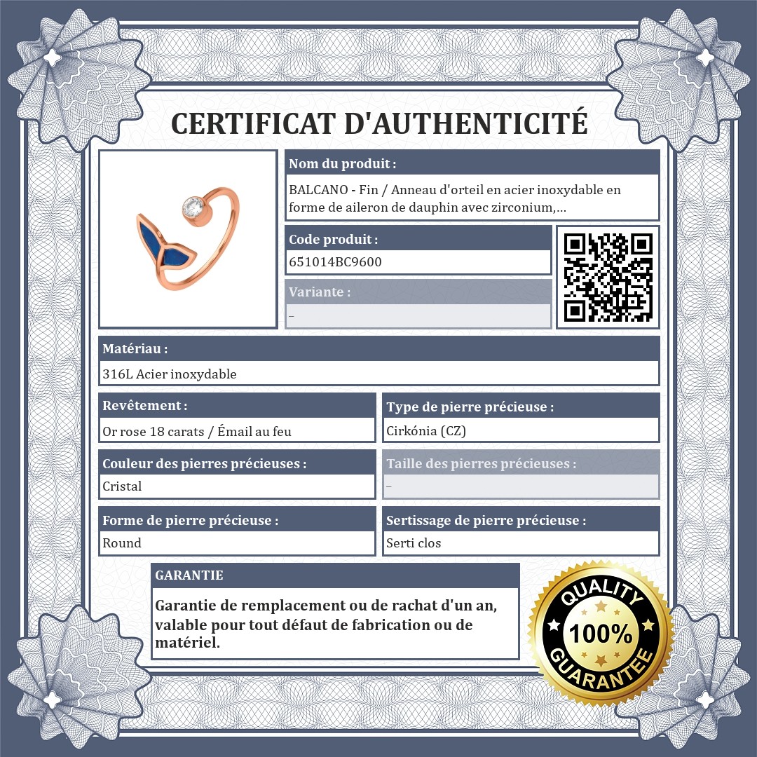 BALCANO - Fin / Anneau d'orteil en acier inoxydable en forme de aileron de dauphin avec zirconium, plaqué or rose 18K