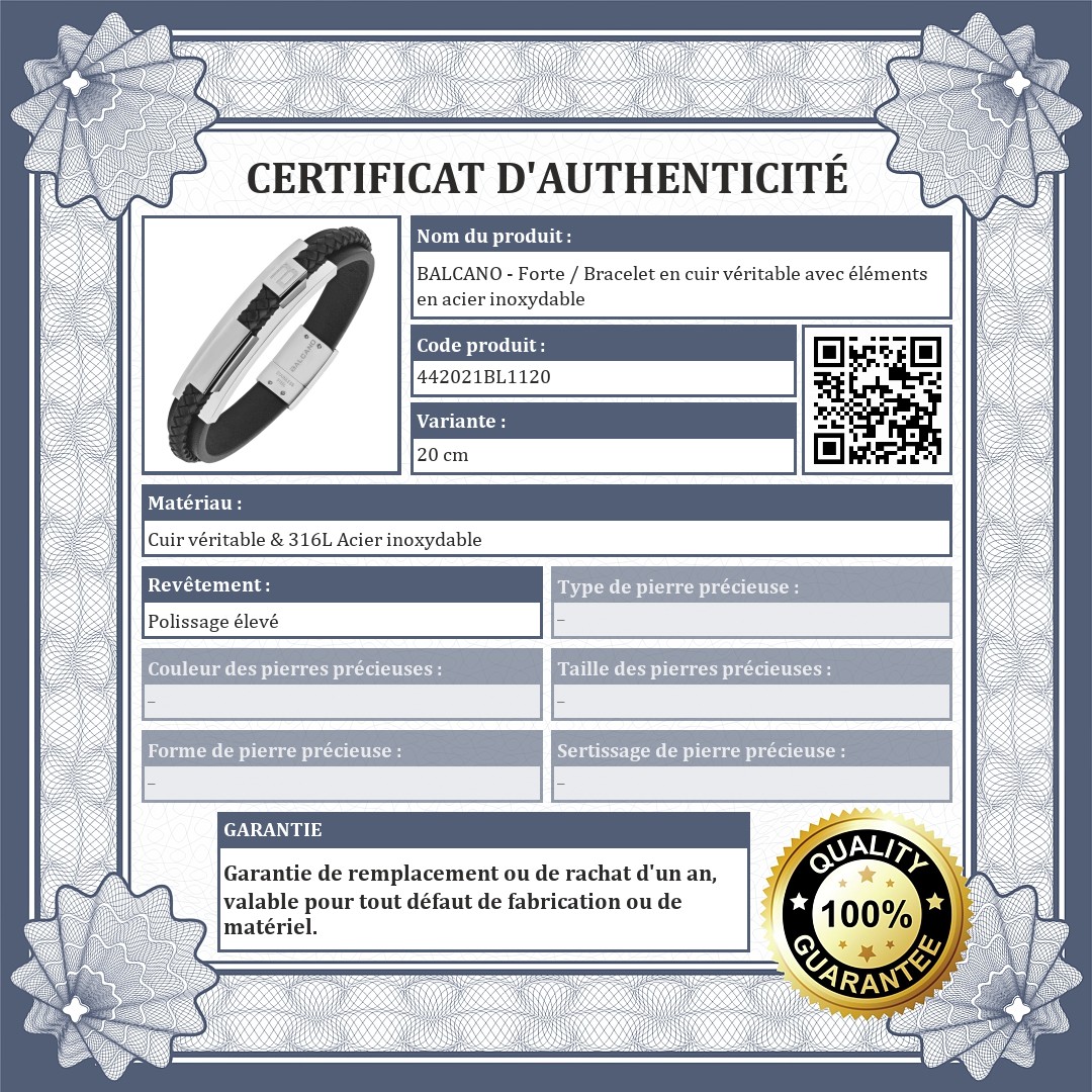 BALCANO - Forte / Bracelet en cuir véritable avec éléments en acier inoxydable